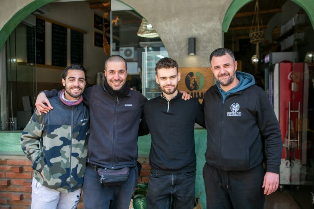 Ο Φίλιππας από το Rhino Team, γνωστός για την αστείρευτη ενέργεια και την «τρέλα» του, φωτογραφίζεται μαζί με τον Λεονάρντο, τον Δημήτρη και τον Σάκη. Η παρέα του Rhino, στη Βενιζέλου, δίνει καθημερινά ρυθμό σε ένα από τα πιο ζωντανά σημεία του κέντρου, με χαμόγελα, γρήγορο καφέ και πάντα καλή διάθεση.